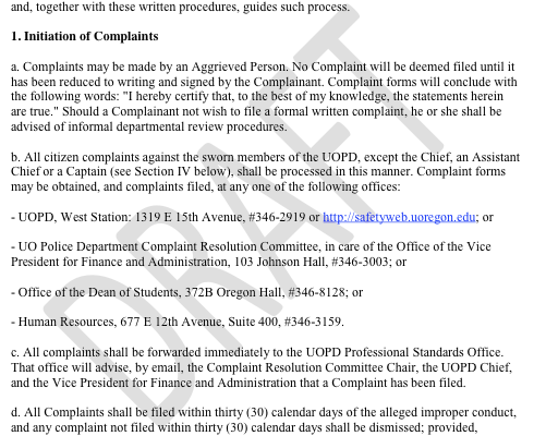 Get real, your honor, a dead battery is the definition of exigent. Anway, who will hear the complaint? Who knows – while the new UOPD has a bloated budget, plenty of SUV’s, and a modest supply of guns, they don’t have more than a draft complaint process: