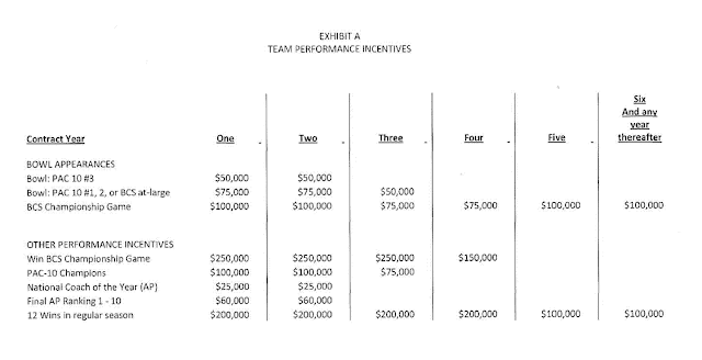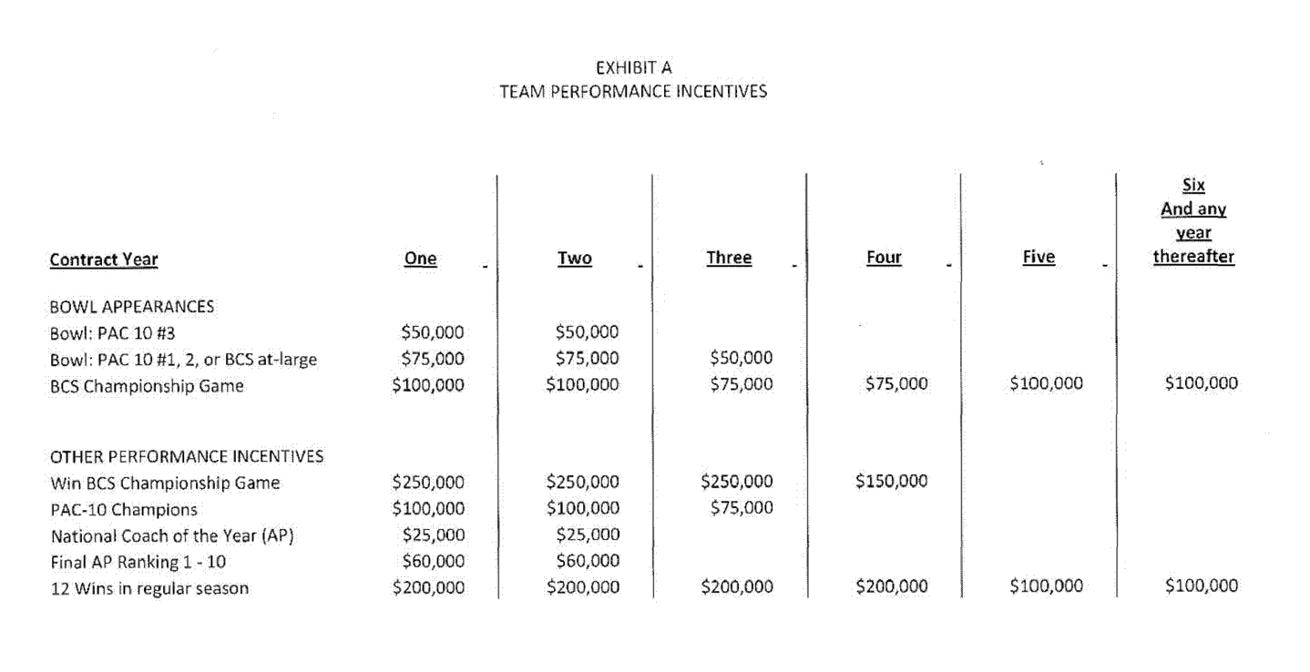 12/20/12. Here are the contracts for AD Rob Mullens and Coach Chip Kelly, which include bonuses for bowl appearances and wins. If UO had agreed to a plea bargain over the Lyles recruiting infractions that included vacating some of these wins, could UO have clawed back the bonuses? I’ve got a question on that in to UO’s VPFA Jamie Moffitt. Due diligence, I think the lawyers call this. More later.