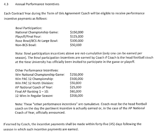 The “other incentives” are cumulative. So it looks like Helfrich has saved us $835K, relative to the worst case outcome of a National championship, etc. etc. etc.